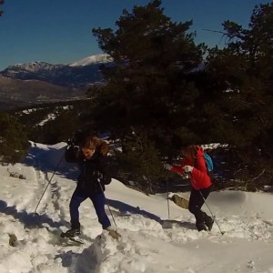 subiendo en una ruta con raquetas de nieve cerca de Madrid
