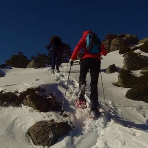 Disfrutando de una ruta con raquetas de nieve cerca de Madrid