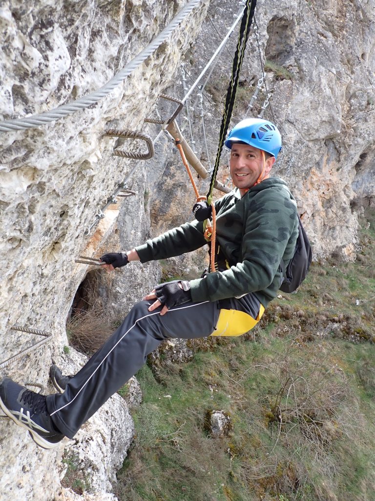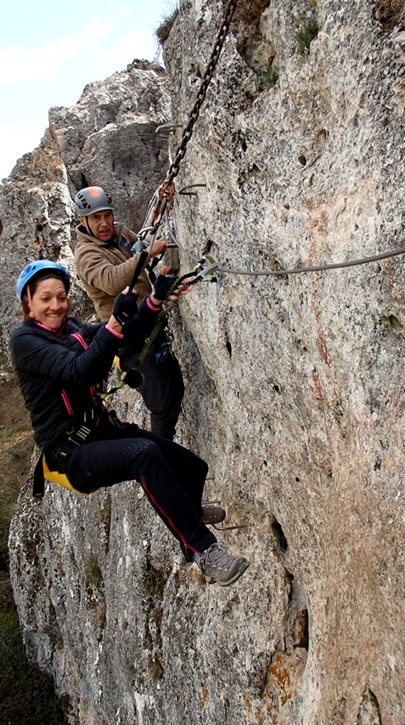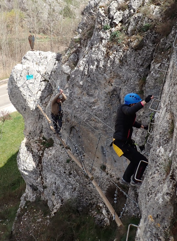 la Vía Ferrata de Priego, un clásico de la zona centro con distintos niveles de dificultad. (De K1 a K4 sobre un máximo de K6): Pueden ir niños pero los mayores también lo pasaran bien en la K4. (Si se atreven…)